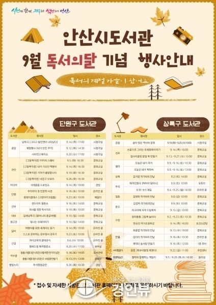 안산시는 9월 독서의 달을 맞아 시민들의 독서활동 활성화를 위해 안산시 도서관에서 다채로운 문화행사를 운영한다고 28일 밝혔다.