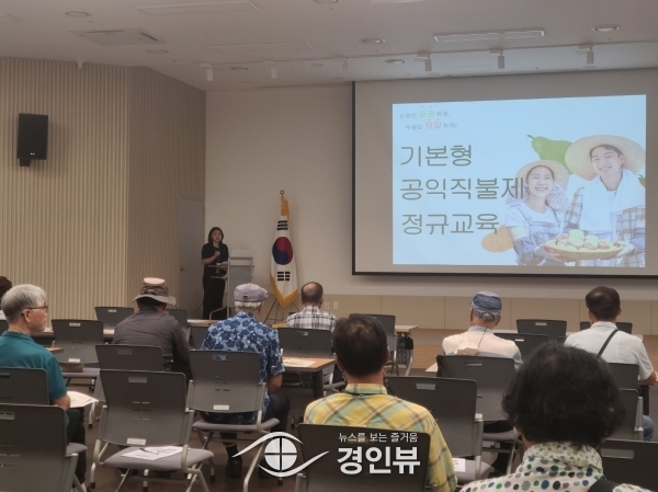 (경인뷰) 수원시는 ‘기본형 공익직불제’ 정규교육 미이수자를 대상으로 25일 수원시농수산물도매시장 대회의실에서 대면교육을 열었다.