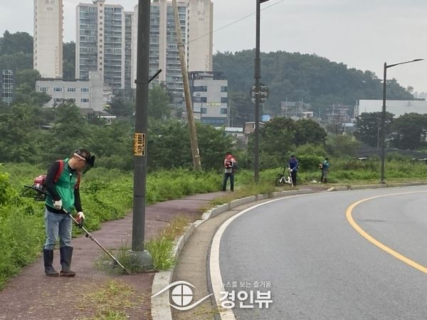(경인뷰) 이천시 새마을증포동남녀지도자협의회는 8월 29일 새마을남녀지도자 40여명이 참여한 가운데 예초작업을 실시했다.