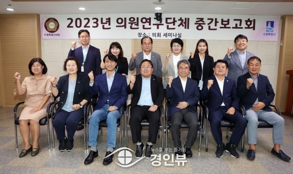 (경인뷰) 수원특례시의회 의원연구단체인 ‘ESG 생태계 구축을 통한 수원시 혁신방안 연구회’가 8월 29일 의회 세미나실에서 연구활동 중간보고회를 열었다.
