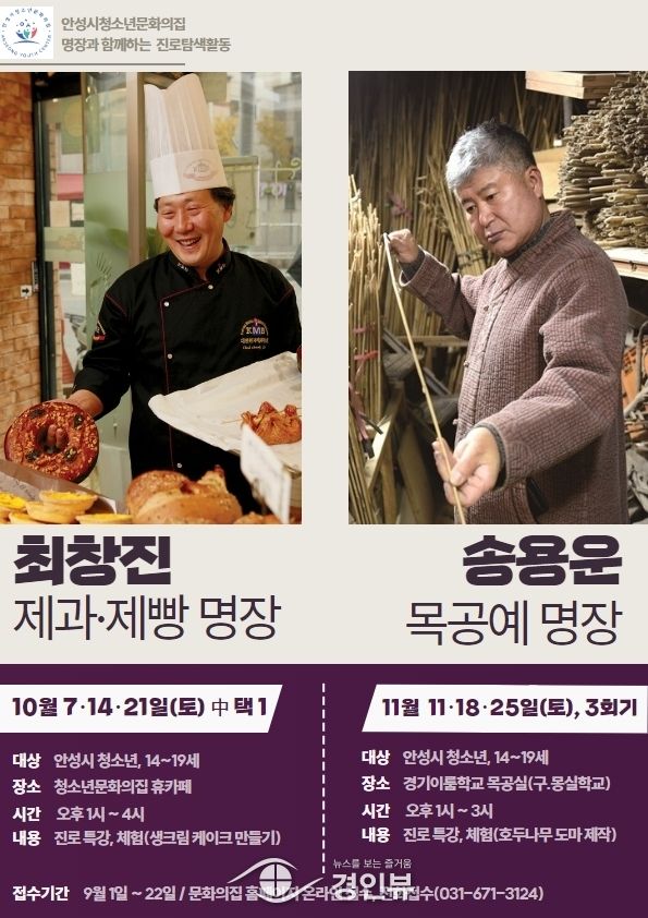 안성시청소년문화의집에서는 매년 관내 청소년을 대상으로 청소년들을 위한 다양한 진로탐색 프로그램을 운영 중이며 올해는 각 분야 명장과 함께하는 프로그램을 마련했다.