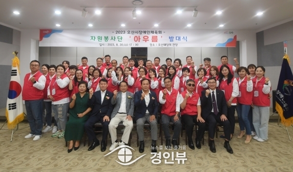 (경인뷰) 오산시장애인체육회는 8월 30일 오후 5시 오산웨딩의 전당에서 ‘2023 오산시장애인체육회 아우름 봉사단 발대식’행사를 개최했다.