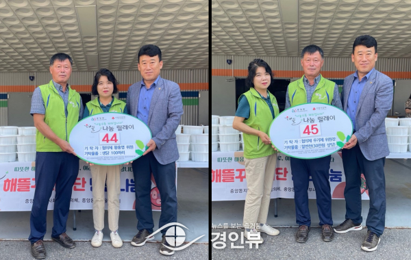 (경인뷰) 오산시 중앙동은 지난 1일 중앙동 지역사회보장협의체 우기제 위원장과 황홍영 위원이 각각 44번째, 45번째로 ‘해뜰 나눔 릴레이’에 참여하며 저소득층을 위한 나눔을 이어갔다고 전했다.