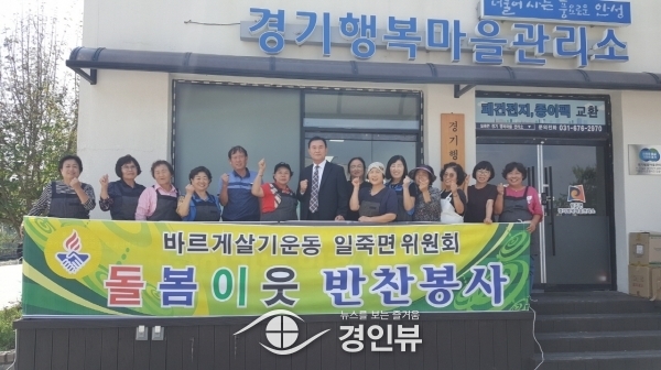 (경인뷰) 바르게살기운동 일죽면위원회는 지난 2일 일죽면 행복마을관리소에서 위원 20여명이 참석한 가운데 '추석맞이 사랑의 반찬 나눔' 행사를 가졌다.