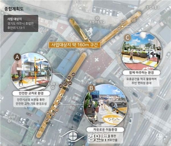 이천시는‘누구나 안전하게, 내 집 앞 마실길’이라는 주제로 공모를 신청해 사업대상지인 호법면 후안리 573-1번지 일원에 시비 3억5천만원을 더해 총 5억원의 예산으로 호법면 내 중심 상권과 초등학교 앞 보행환경을 개선해 모두가 안전하고 편리하게 이용할 수 있는 공간을 조성할 것이며 특히 보행약자의 이동권을 적극 확보할 계획이다.