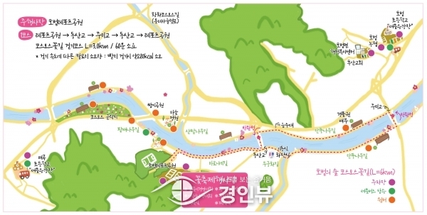 복하천을 중심으로 조성된 호법의 숲은 6km의 코스모스꽃길, 마을정원, 쉼터, LED코스모스오브제, 지난해 완료된 광역자전거도로망 구축으로 라이딩의 명소이자 사람들의 힐링 공간으로 거듭나고 있는 곳이다.