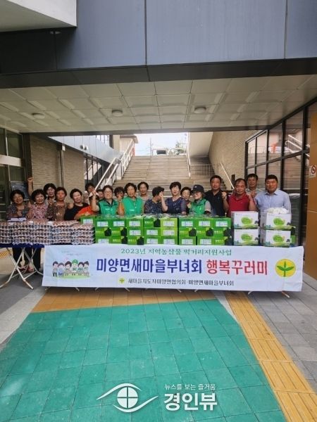 (경인뷰) 미양면새마을부녀회는 지난 5일 미양면사무소에서 행복 꾸러미 나눔 행사를 가졌다 지난 7월부터 시작해 이번이 2회째로 지역에서 생산된 농산물을 이용해 꾸러미를 만들어 취약계층에 전달해 왔으며 이번 달에는 포도, 계란, 가래떡 등 농산물 꾸러미 53세트를 지원했다.