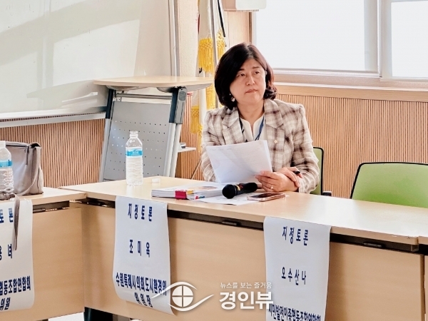 (경인뷰) 수원특례시의회 도시환경위원회 조미옥 위원장이 9월 6일 금곡동 행정복지센터에서 개최 된 ‘공공 및 개인상가 건물을 활용한 마을발전소 건립을 위한 토론회’에 참석했다.