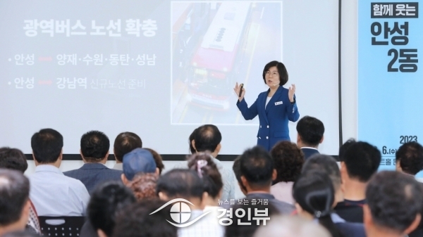 (경인뷰) 안성2동 주민들과 김보라 안성시장이 함께하는 2023년 정책 공감 토크가 주민들의 많은 참여 속에서 9월 6일 개최됐다 시민들과의 공감대 형성 및 소통을 위해 안성맞춤아트홀 문화살롱에서 개최된 이번 행사에서 김보라 시장은 반도체 소재·부품·장비 특화단지로 보개면 동신일반산업단지가 선정된 것에 따른 기대 효과 및 시민들의 숙원인 철도 연결에 대한 추진 경과 등 주요 사업 전반에 대해 시민들과 공유했다.