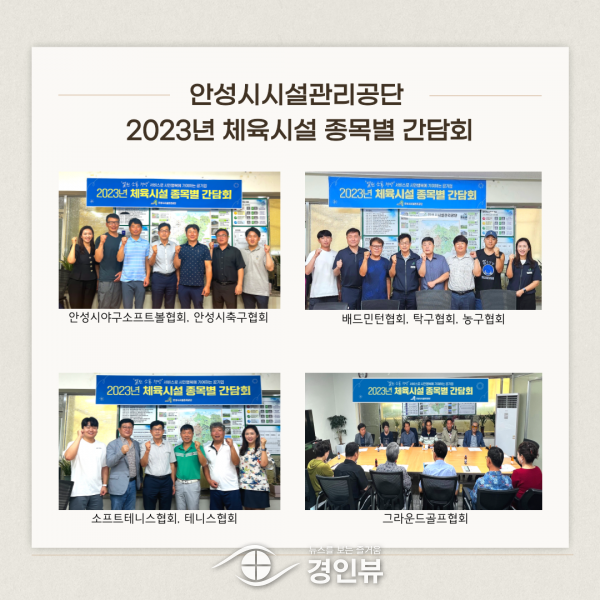 (경인뷰) 안성시시설관리공단은 안성시민의 생활체육활동 제고 및 생활체육시설 활성화 방안을 위해 지난 8월 한 달간 체육시설 종목별 간담회를 실시했다고 밝혔다.