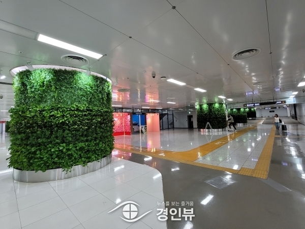 수원시는 최근 수원역환승센터 지하층 공간을 ‘친환경 녹색공간’으로 개선하는 공사를 마무리했다.