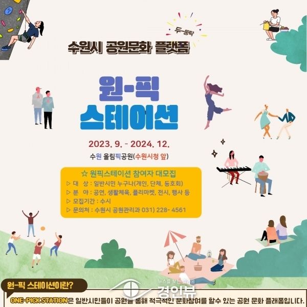 (경인뷰) 수원시가 수원시 공원문화 플랫폼 ‘원-픽 스테이션’에 함께할 참가자를 모집한다.
