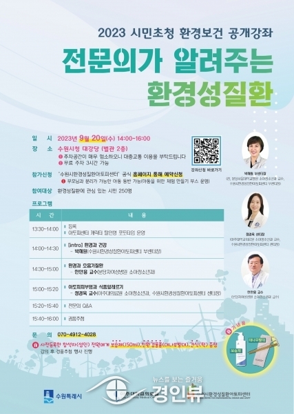 (경인뷰) 수원시 환경성질환아토피센터는 9월 20일 수원시청 대강당에서 시민초청 환경보건 공개강좌 ‘전문의가 알려주는 환경성질환’을 연다.