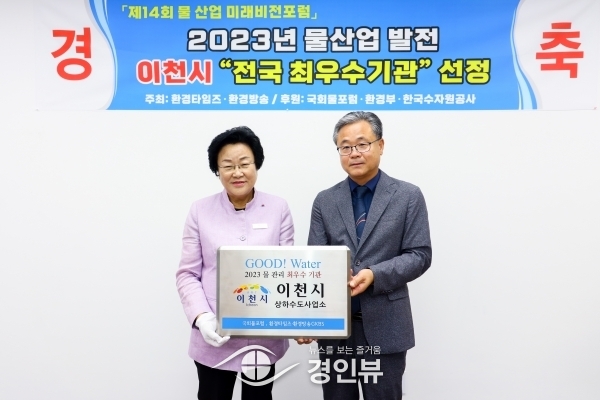 (경인뷰) 환경타임즈·환경방송GKBS에서 주최하고 국회물포럼·환경부에서 후원하는 제14회 물 산업 미래비전 포럼 ‘2023년 물 산업 발전을 위한 상생협력 최우수기관“으로 이천시가 선정되어 지난 13일 부산항국제컨벤션센터에서 개최되는 행사에 초청되어 시상식에 참석했다.
