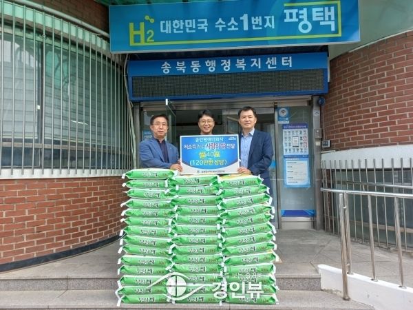 (경인뷰) 평택시 송탄평애미화사는 지난 14일 우리 고유의 명절 추석을 맞아 송북동 행정복지센터를 방문해 사랑의 쌀 40포를 기부했다.