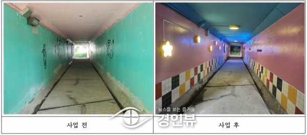 이번 사업에서 연장 30미터 터널에 지구 및 별 모형의 LED 조명과 페인트칠 작업, 타일 부착 등으로 쾌적하게 보행할 수 있는 안심터널로 탈바꿈됐다.