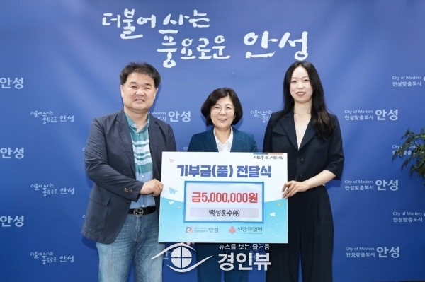 (경인뷰) 안성시는 지난 15일 ㈜백성운수로부터 취약계층을 위한 기부금 500만원을 기부받았다.