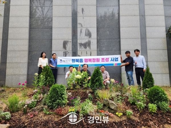 (경인뷰) 평택시 청북읍에서는 지난 14일 청북읍 행복정원단 단원들과 함께 청아초등학교 옆 청북읍 옥길리 1232번지 일원 유휴지에 행복정원을 조성했다.