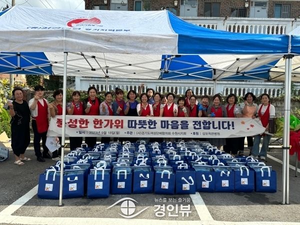 (경인뷰) 경기도여성단체협의회 수원시지회는 18일 정자2동 주민센터 주차장에서 전, 송편 등 추석 명절음식을 만들어 권선·장안구 사회취약 계층 220가구에 전달했다.