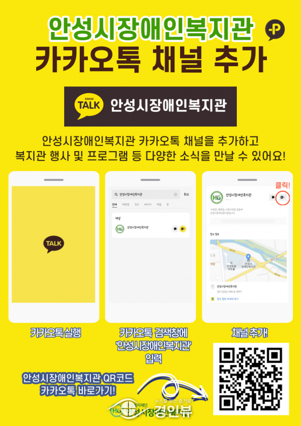 (경인뷰) 사회복지법인 한길복지재단에서 수탁하고 있는 안성시장애인복지관은 지역주민 및 이용자를 위해 복지관 카카오톡 채널을 개설했다고 밝혔다.