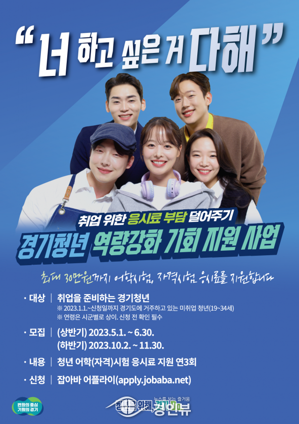 (경인뷰) 이천시가 오는 10월 2일부터 11월 30일까지 관내 미취업 청년들을 대상으로 어학·자격시험 응시료를 지원하는 ‘경기청년 역량강화 기회 지원 사업’을 추진한다고 밝혔다.