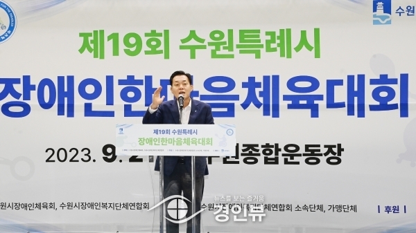 이날 체육대회에는 이재준 수원특례시장, 이재식 수원특례시의회 부의장, 김춘봉 수원시장애인복지단체연합회장 등이 참석했다.