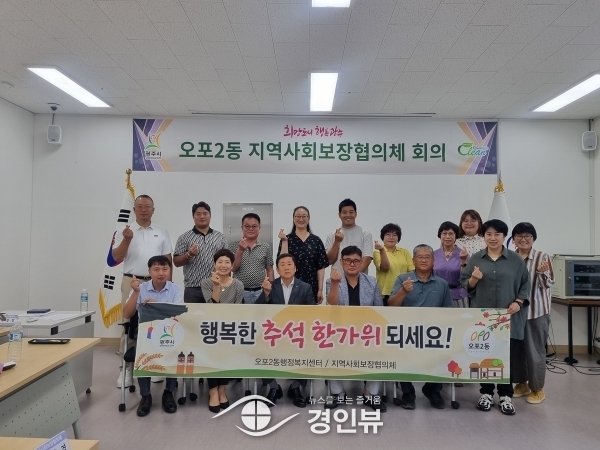 박성영·이호순 공동위원장은 “추석 명절을 맞이해 오포2동의 취약계층 주민들이 풍성하고 즐거운 한가위가 됐으면 한다”며 “앞으로도 꾸준히 이웃돕기 활동을 통해 오포2동 주민들을 위해 힘쓰겠다”고 전했다.