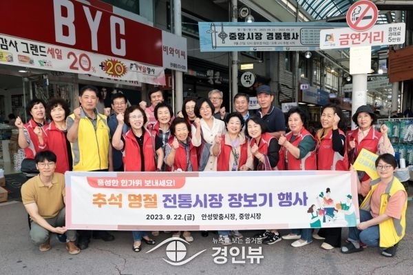 (경인뷰) 안성시가 민족 고유의 명절인 추석을 맞아 지난 22일 전통시장 소비 촉진 및 지역경제 활성화를 위한 전통시장 장보기 행사를 실시했다.
