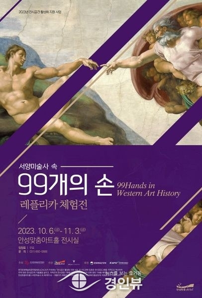 (경인뷰) 안성맞춤아트홀은 안성시의 대표 축제 ‘2023 안성맞춤 남사당 바우덕이 축제’를 축하하며 다양한 기획과 풍성한 볼거리 분위기를 살리는데 일조하고자 전시 ‘서양미술사 속 99개의 손 - 레플리카 체험전’을 진행한다.