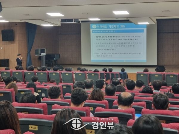 교육은 적극행정 업무 관련성과 전문성을 확보하고 일선 공직자들이 직접 체감할 수 있도록 감사원 적극행정지원담당관실 김도곤 수석감사관을 강사로 초빙해 적극행정의 필요성, 사전컨설팅 및 면책 제도의 개념과 사례 등을 주제로 진행했다.