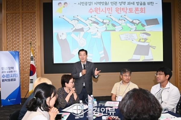 (경인뷰) 수원시가 5일 시청 중회의실에서 ‘시민공감 지역맞춤 인권정책 과제 발굴을 위한 수원시민 원탁토론회’를 열고 시민 공감형 인권 정책 추진 방안을 모색했다.