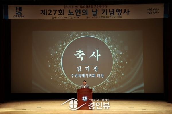 (경인뷰) 수원특례시의회가 10월 6일 오후 수원청소년문화센터 온누리아트홀에서 열린 ‘제27회 노인의 날’ 기념식에 참석해 어르신에게 공경과 감사의 마음을 전했다.