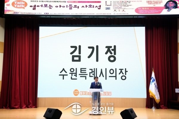(경인뷰) 수원특례시의회 김기정 의장과 이재식 부의장을 비롯한 시의원들은 10월 10일 ‘학교사회복지사업 부모공감 콘서트’에 참석해 사회복지사업에 관심을 기울이겠다고 약속했다.