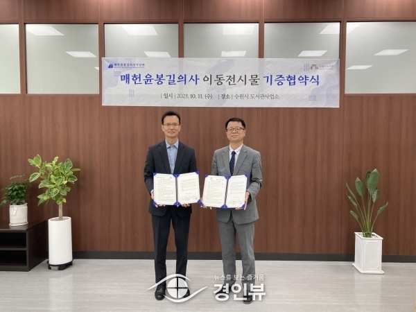 매헌윤봉길의사기념관은 지난 11일 수원시도서관사업소와 이동전시물 기증 협약을 체결했다.