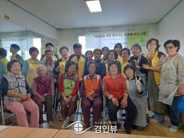“어르신을 위한 찾아가는 맞춤형 프로그램 사업은 노인인구가 많은 율면의 특성을 반영한 사업으로 거동불편, 대중교통이용 불편 어르신을 위해 2022년 12월 마을별 사전 수요조사를 통해 신청한 7개 마을을 대상으로 상반기 3개 마을, 하반기 4개 마을을 협의체 위원들이 찾아가서 어르신들과 함께 건강간식을 만들고 복지사각지대 발굴을 위한 사회복지서비스를 홍보하는 사업이다.
