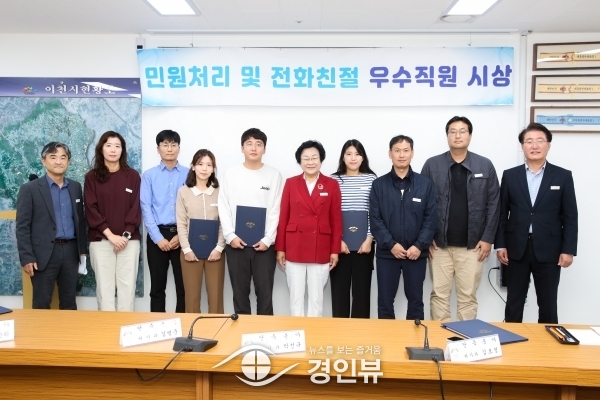 (경인뷰) 이천시는 12일 적극적인 민원응대와 민원서비스 개선으로 시민 편의를 높인 우수 공무원을 격려하기 위해‘2023년 3분기 민원 처리 및 전화친절 우수 공무원’16명에 대한 시상식을 개최했다.