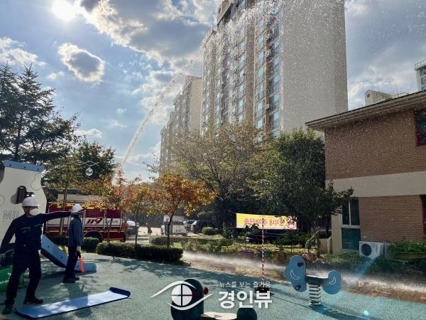 (경인뷰) 용인특례시 기흥구 동백1동이 지난 12일 백현마을 주공9단지 아파트에서 용인소방서 동백119안전센터와 동백의용소방대 등 50여명이 참여한 가운데 민·관합동 화재대피 훈련을 진행했다고 16일 밝혔다.