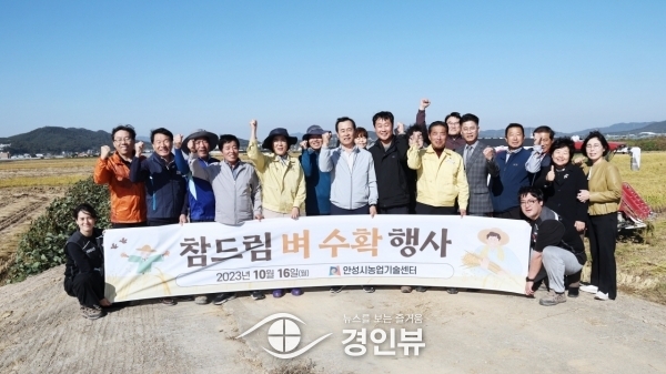 (경인뷰) 안성시에서는 참드림 벼베기 행사를 16일 발화동 이상돈 농가 포장에서 진행했다.