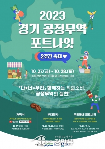(경인뷰) 공정무역의 중요성과 가치를 알리는 ‘2023년 공정무역 포트나잇’ 축제 개막식이 오는 27일 수원컨벤션센터에서 열린다.