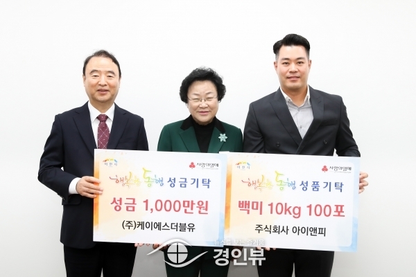 ㈜케이에스더블유에서 성금 1,000만원, 주식회사 아이앤피에서 백미 10kg 100포를 기탁해 19일 이천시청에서 기탁식을 가졌다.