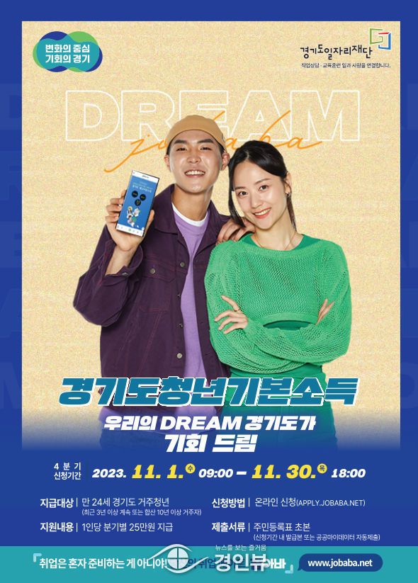 신청방법은 경기도 일자리플랫폼 ‘잡아바’ 홈페이지에서 회원가입 후 본인이 신청하면 된다.