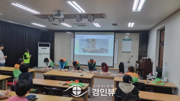 이날 교육에서 지역자율방재단 단원 50여명은 안전의식, 일상생활에서 반드시 알아야 할 골든타임 확보의 중요성 등 새빛안전지킴이 교육을 받았다.