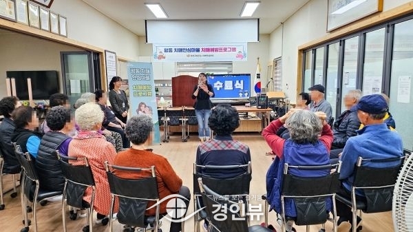 (경인뷰) 수원시 권선구보건소는 지난 24일 오목천 경로당에서 평동 치매안심마을 ‘똑똑 두뇌활동교실’ 수료식을 열었다.