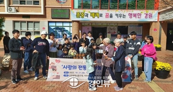 (경인뷰) 인천남부교육지원청은 28일 경원초등학교에서 학생과 학부모 50여명이 참여한 가운데 ‘남부 마을장독대’ 체험 행사를 열고 지역의 독거 어르신에게 직접 담근 된장과 간장을 나눴다.