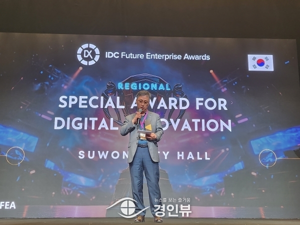 (경인뷰) 수원시가 국내 ‘2023 IDC 퓨처 엔터프라이즈 어워드’에서 ‘디지털혁신특별상’을 수상한 데 이어 아·태지역 부문에서도 국내 참가기관 중 유일하게 ‘디지털혁신특별상’을 수상하는 쾌거를 이뤘다.