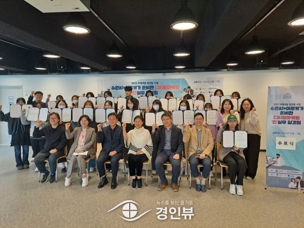 (경인뷰) 수원시는 수원시청소년청년재단, ㈜아르케와 함께 지난 10월 11일부터 31일까지 청년지원센터에서 청년 40여명을 대상으로 디지털마케팅 실무 교육을 진행, 31일 수료식을 개최했다.
