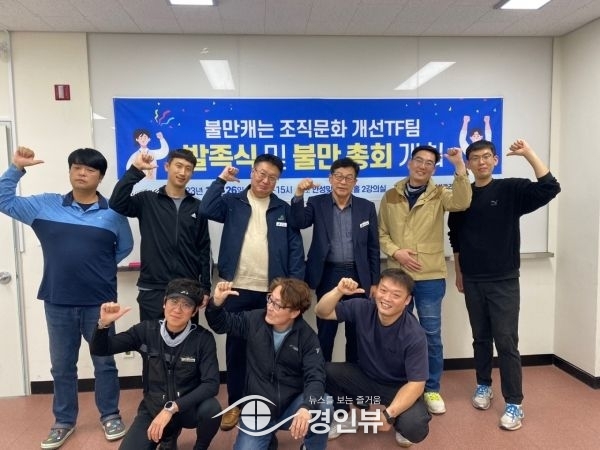 (경인뷰) 안성시시설관리공단은 26일 권위적인 조직문화 탈피 및 소통과 공감의 직장분위기 조성 등 바람직한 조직문화 형성을 추진할 ‘불만 캐는 조직문화 개선 TF팀’ 발족식을 개최했다고 밝혔다.