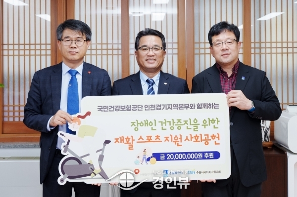 (경인뷰) 국민건강보험공단 인천경기지역본부가 1일 “장애인 자전거 구입에 사용해 달라”며 수원시 사회복지협의회에 2000만원을 기탁했다.