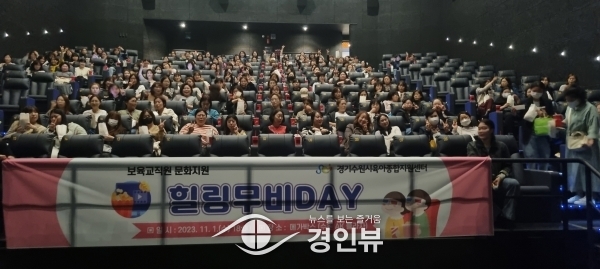 (경인뷰) 수원시육아종합지원센터는 1일 관내 어린이집 보육교직원 200명을 대상으로 ‘힐링 무비 데이’를 열고 영화 관람을 제공했다.