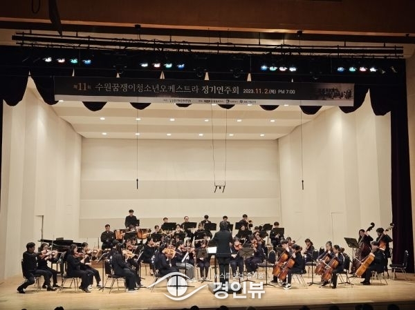 (경인뷰) 수원시가 올해 11주년을 맞이한 ‘2023년 제11회 꿈쟁이 오케스트라 정기연주회’를 2일 수원청소년문화센터 온누리아트홀에서 열었다.